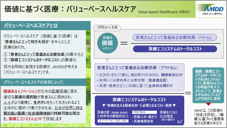 ■価値に基づく医療:バリューベース・ヘルスケアに基づきAMDDが目指す環境